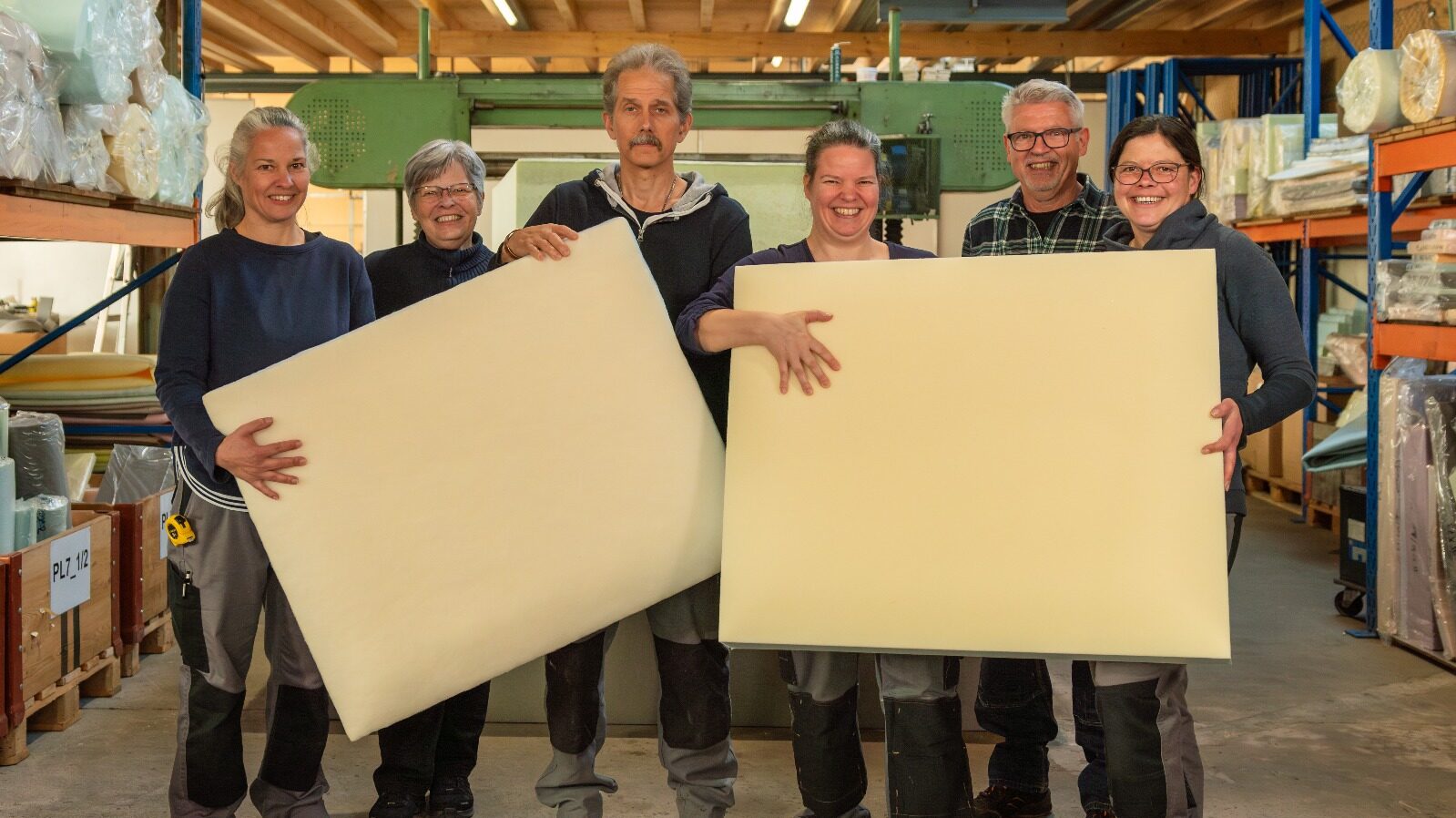Ein qualitativ hochwertiger Schaumstoff – beispielsweise mit einem Raumgewicht über 40 kg/m³ – kann problemlos 8 bis 12 Jahre halten, ohne nennenswert an Komfort oder Form zu verlieren. Wichtig ist dabei auch die richtige Pflege und Nutzung. Mehr dazu in einer nächsten Story.